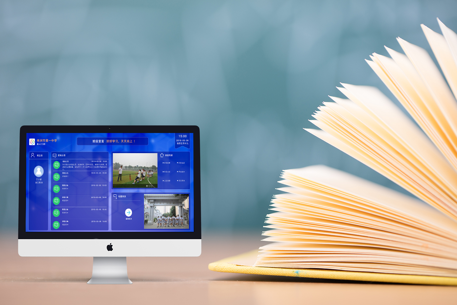 通過安裝多功能電子班牌、傳達室多功能一體機,打通并連接校園所有顯示屏、將學生刷卡、人臉識別、二維碼識別、智能語音等技術嵌入,實現校園數據"采集、顯示、交互”智能化,構建智慧校園軟硬件結合的整體環境。
